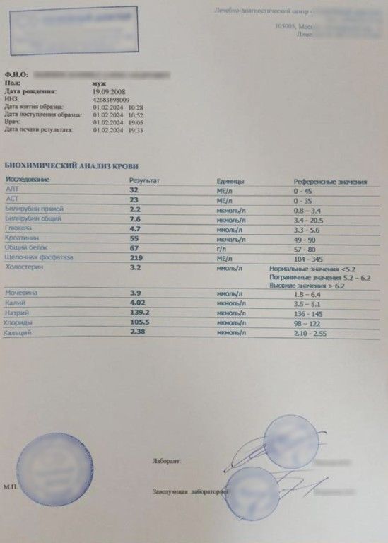 Биохимический анализ крови (форма 228/у)